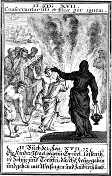 Description: The Israelites offer their sons in the fire and practice divination.