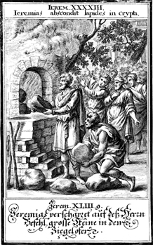 Description: Jeremiah burns large stones in the furnace as a sign of Nebuchadnezzar’s capture of Jerusalem.