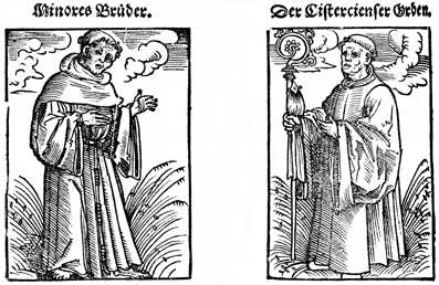 Description: Minor Brother and Cistercian Order. This woodcut was created by Lukas Cranach the Elder .