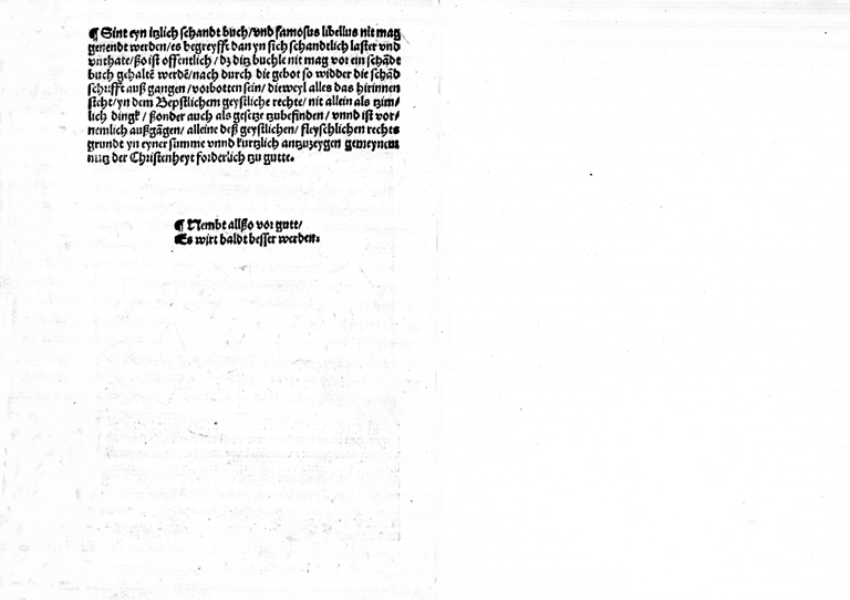 Description: A page of German text from Martin Luther's "Passional Christi vnnd Antichristi", a polemic in the form of thirteen pairs of woodcuts (with captions) depicting scenes from the life of Christ contrasted with scenes from the life of the Pope. The text for the Latin edition was by P. Melanchthon and J. Schwertfeger, while that for the German edition was by M. Luther. The text consists of quotations from the Gospels and the canon law.
