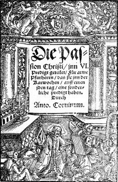Description: Architectural title-page border, with putti at the top and Jesus Christ driving the money-changers out of the Temple, overturning their table in the process.