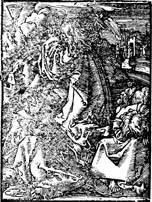 Description: In the Garden of Gethsemane Jesus' disciples are sleeping on the night he was betrayed. Peter is asleep on the left, with his sword visible, and in the upper left is a cup in the sky.