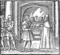 Description: David receives the consecrated bread and the sword of Goliath from the priest Ahimelech at the temple in Nob.