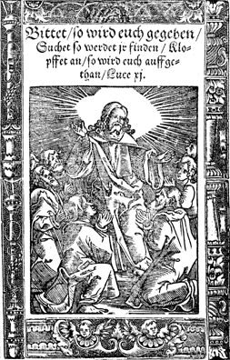 Description: Jesus teaches his disciples how to pray. The artist of this engraving is the Monogrammist HA.
