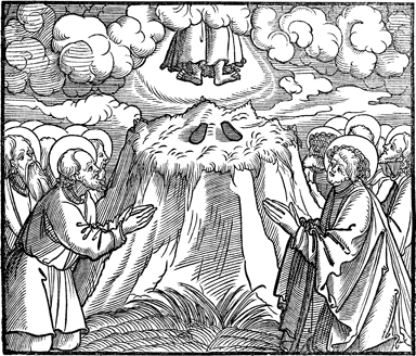 Description: Jesus ascends into heaven in the presence of his disciples.