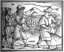 Description: Joshua and Caleb return from the exploration of Canaan and report to Moses of its abundance, indicated by the large size of the grape clusters they bear.