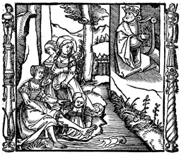Description: As David looks down from a palace balcony, Bathsheba bathes in a pool, accompanied by her attendants.