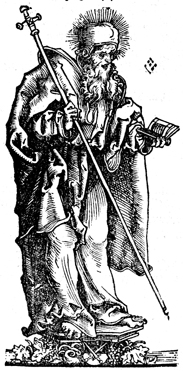 Description: The Apostle Philip stands with book in hand and a staff with a cross.