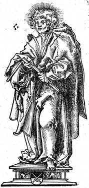 Description: The Apostle Matthew stands with a builder's square in hand.