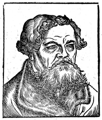 Description: The portrait of Georg Rhaw (1488-1548) also served as this Wittenberg printer's device.