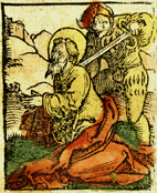 Description: A rendering of St. Matthew being martyred by being stabbed in the back.