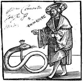 Description: A depiction of a man speaking to the Devil, who is portrayed in the guise of a snake.