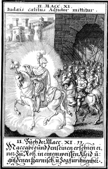 Description: A magnificent horseman appears to lead the Jews in battle.