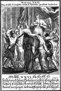 Description: Caiaphas tears his clothes upon hearing Jesus’ testimony.