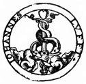 Description: In the printer’s device of Hans Lufft (1495-1584) displays a two-handed sword held upright piercing a heart with two serpents winding down the sword. One gnashes at the crossbar of the sword as the other sinks a fang into one of the hands grasping the hilt. Several copies of this device with slight variations are known.