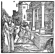 Description: Jesus tells the Parable of the Unmerciful Servant as the action takes place in the background.