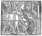 Description: St. Paul writes an epistle with his attribute, the sword nearby.