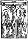 Description: As Jesus is crucified, his mother and the Apostle John stand nearby.