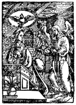 Description: The angel Gabriel visits Mary and announces that she will give birth to Jesus.