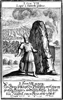 Description: The Israelites defeat the Philistines in battle at Mizpah, as Samuel offers a sacrifice to God.