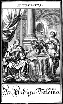 Description: King Solomon is depicted as the author of Ecclesiastes. Lady Wisdom is on the right.