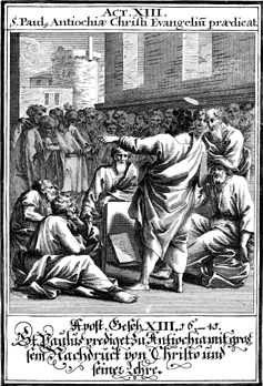 Description: Paul preaches the gospel to the Gentiles in Pisidian Antioch.