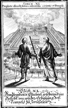 Description: Ezekiel’s vision of the heavenly temple with a depiction of Ezekiel's vision of the heavenly throne room above.