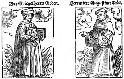 Description: Spiegelherrn and Hermite Augustinian Orders. This woodcut was created by Lukas Cranach the Elder.