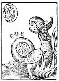 Description: The Pope appears as a beast wearing a crown in the flames of hell.