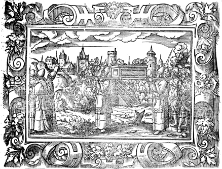 Description: Moses breaks the tablets of the Ten Commandments upon seeing the Israelites worshiping a golden calf. The monogram of the artist, Virgil Solis (1514-1562), has been placed in the lower left corner of the woodcut.