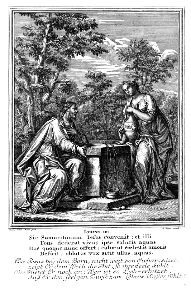 Description: Jesus speaks with the Samaritan woman at the well in Sychar.