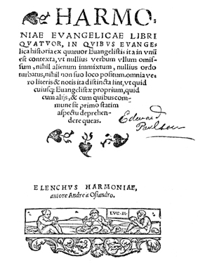 Description: The title page of Andreas Osiander's Harmony of the Gospels.