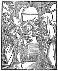 Description: Mary and Joseph bring the infant Jesus and present him at the temple.