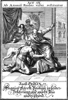 Description: Ananias prays for Saul to receive his sight in Damascus.