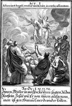 Description: Following Jesus’ ascension into heaven two angels appear from heaven to inform the disciples of the second coming.