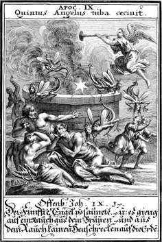 Description: An angel sounds the fifth trumpet, causing a star to fall from heaven and open the Abyss, allowing locust-like creatures to prey upon the earth.