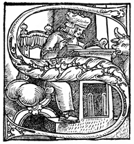 Description: Initial letter S features St. Luke writing his gospel with his attribute, the bull, nearby.