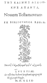 Book Title: T¯es Kain¯es Diath¯ek¯es hapanta = Nouum Testamentum ex Bibliotheca Regia
