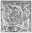 Description: This initial letter Q depicts Diogenes and Aristippus.