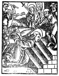Description: Jesus is beaten with a club. Mary is depicted with a sword piercing her heart.