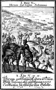 Description: Hiram, King of Tyre, supplied Solomon with cedar wood for the temple in exchange for grain.