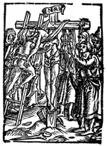 Description: Following his death, Jesus is removed from the cross by Joseph of Arimathea and Nicodemus.