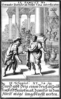 Description: David meets with Uriah the Hittite and has him deliver his own death notice.