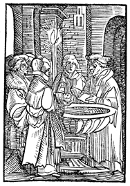 Description: A baby is baptized in this illustration of the Sacrament of Baptism.