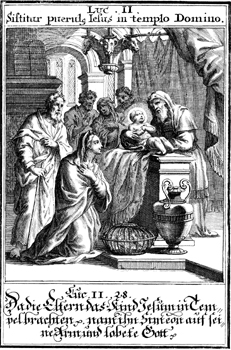 Description: When Mary and Joseph present the infant Jesus at the temple, Simeon blesses Jesus .