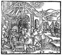 Description: The baby Jesus and his parents are visited by the magi.