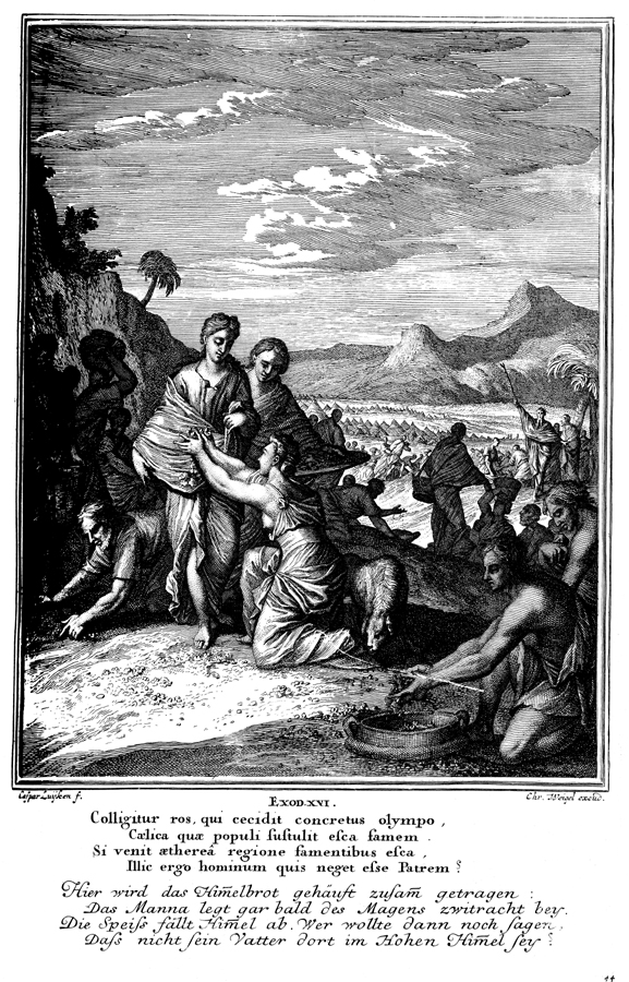 Description: The Israelites gather manna as it falls from heaven.
