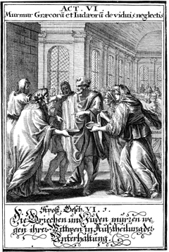 Description: The Grecian Jews complain against the Hebraic Jews because their widows are being overlooked in the daily food rationing.