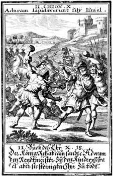 Description: Adoniram, commander of forced labor, is stoned to death by the Israelites.