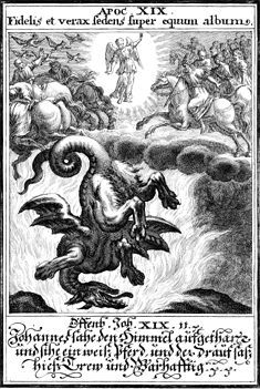 Description: The rider on the white horse achieves the final victory, as the beast is cast into the lake of fire.